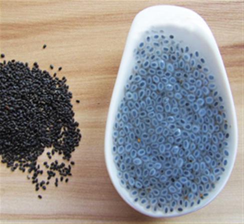 از دیگر ویژگی های تخم شربتی آن است که پس از خیس کردن در آب بزرگ شده و به شکل ژله در می آید. این محصول یک لایه بی رنگ را در اطراف خود ایجاد می کند و بزرگ می شود و اندازه آن پس از جذب آب بسیار بزرگ خواهد شد.